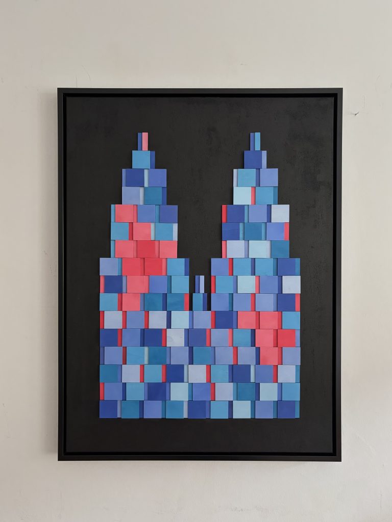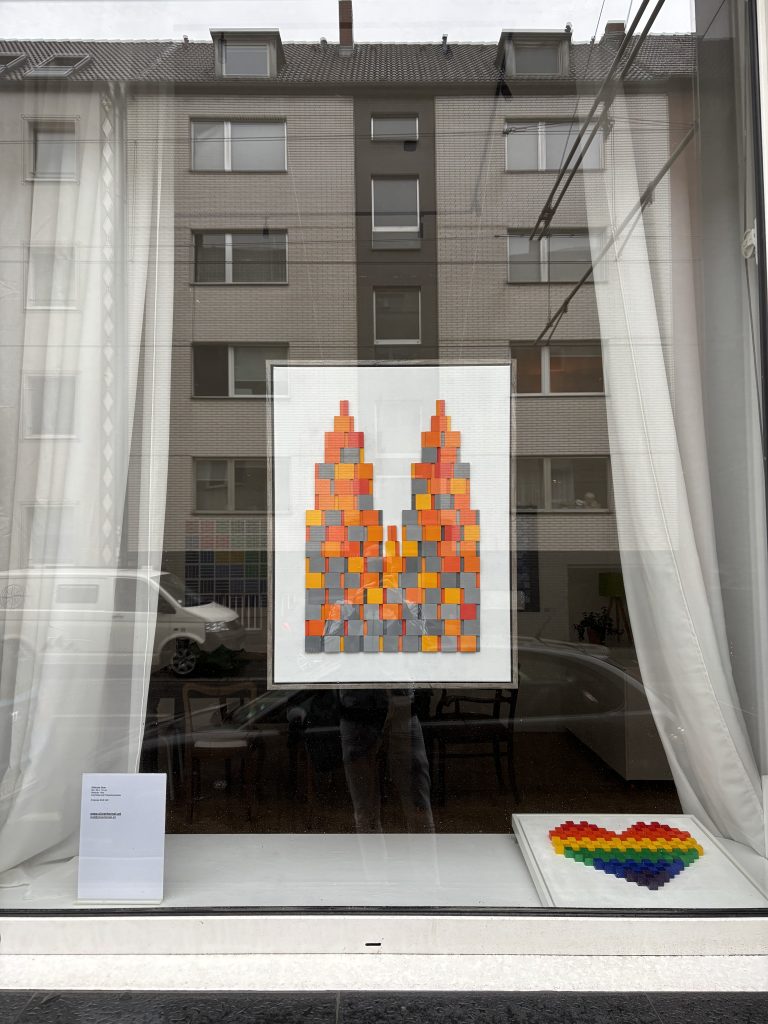 „Kölsche Dom 2“ 60 x 80 x 1,8 cm, Material: Holz, Acrylfarbe auf Polyestergewebe im Rahmen, auf der Rückseite handsigniert, Endpreise EUR 420.