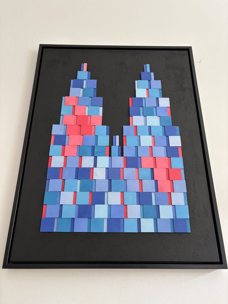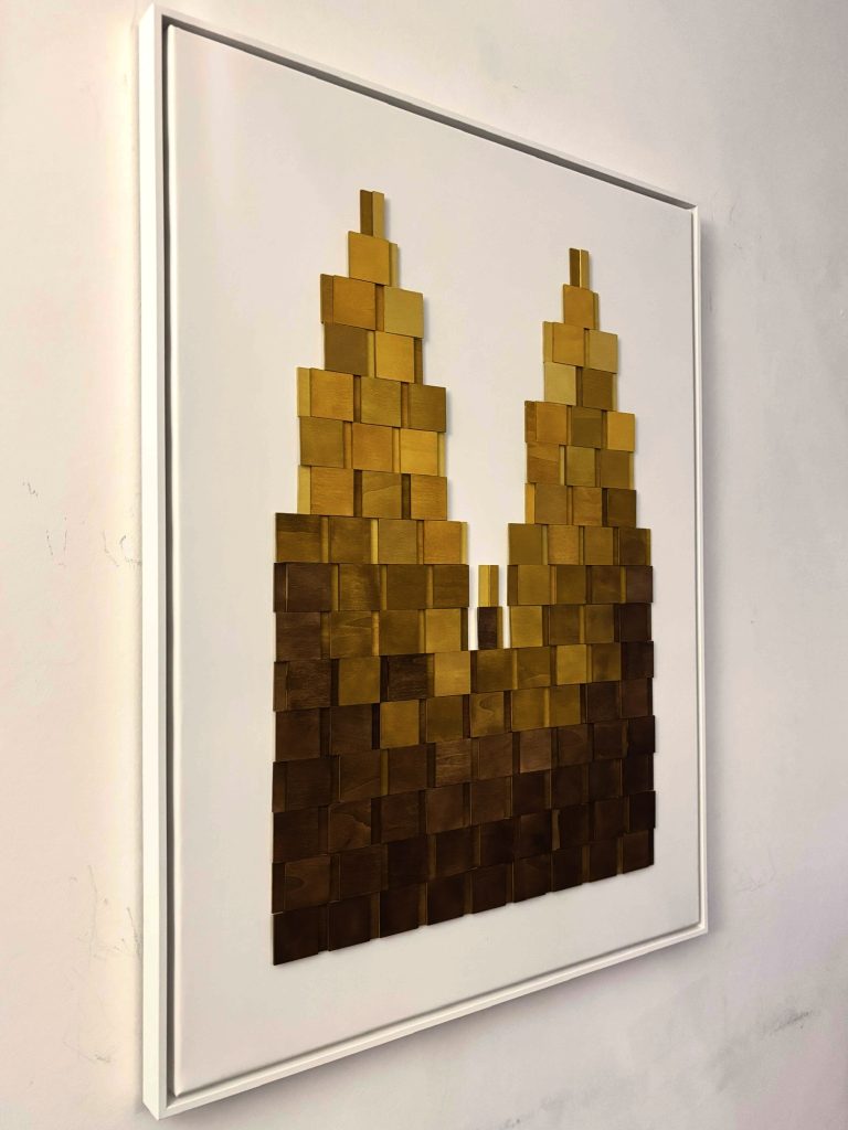 „Kölsche Dom I“ 60 x 80 x 1,8 cm, Material: Holz, Acrylfarbe auf Polyestergewebe im Rahmen, auf der Rückseite handsigniert, Endpreis EUR 420.