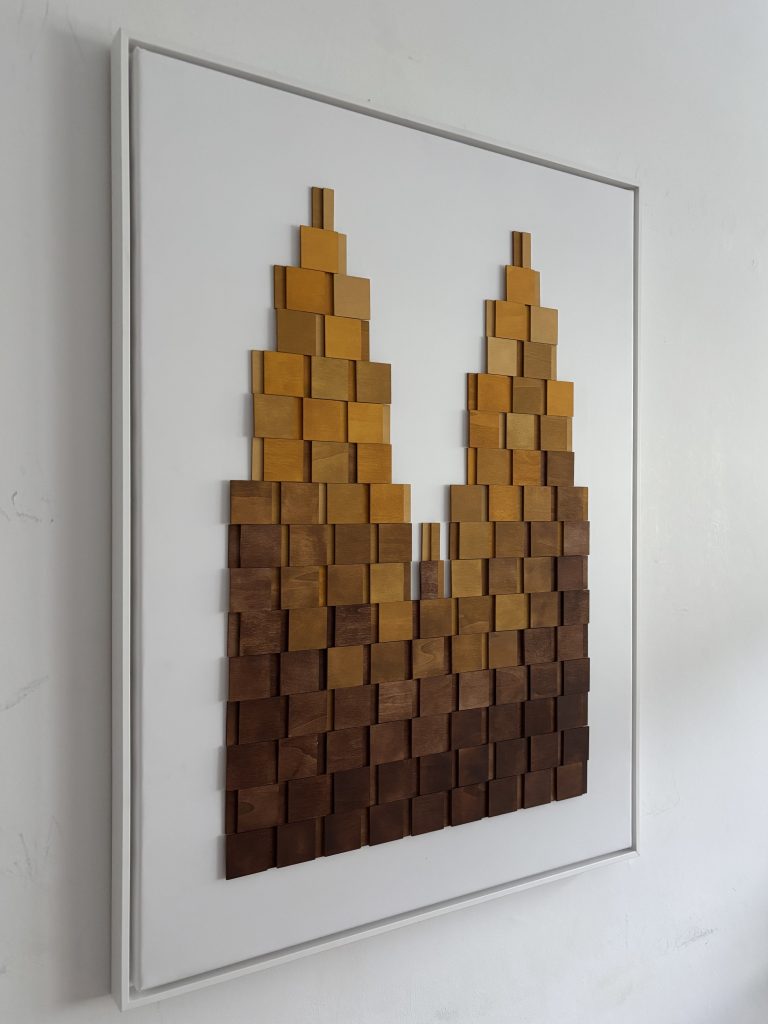„Kölsche Dom I“ 60 x 80 x 1,8 cm, Material: Holz, Acrylfarbe auf Polyestergewebe im Rahmen, auf der Rückseite handsigniert, Endpreis EUR 420.