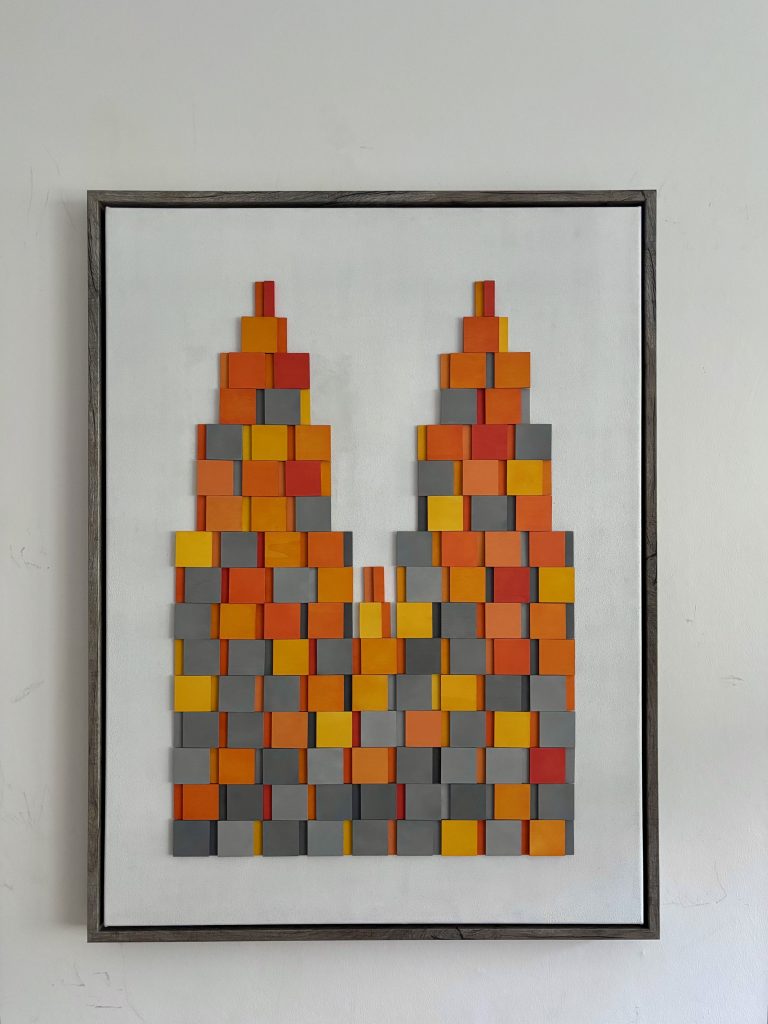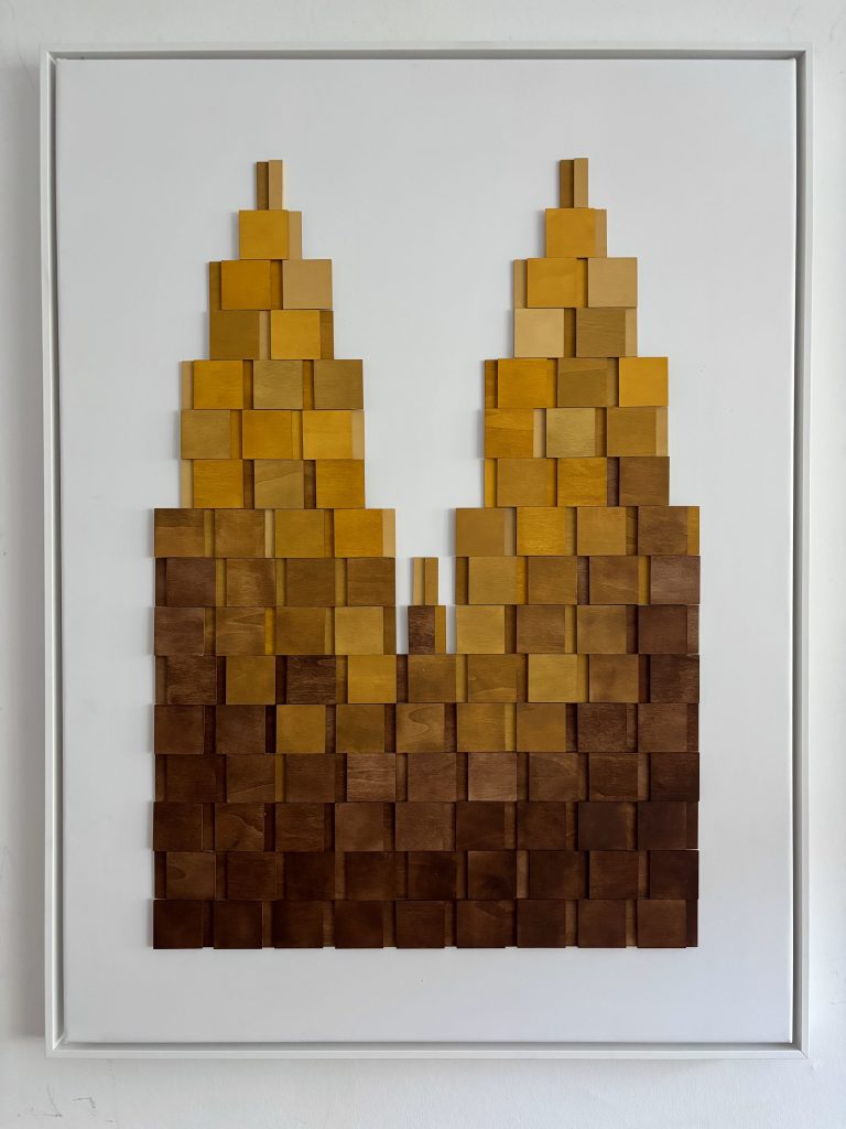 „Kölsche Dom 2“ 60 x 80 x 1,8 cm, Material: Holz, Acrylfarbe auf Polyestergewebe im Rahmen, auf der Rückseite handsigniert, Endpreise EUR 420.