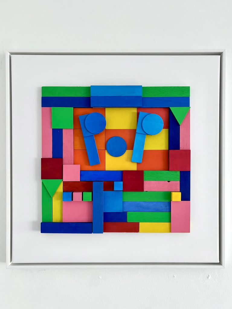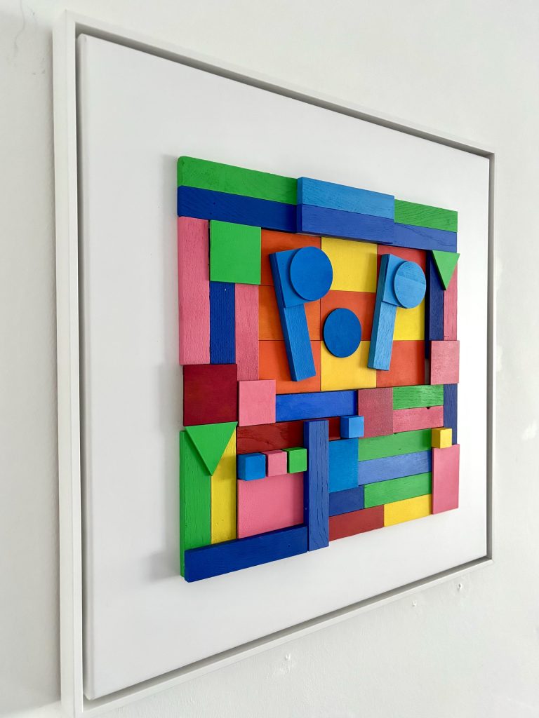 „Pop“ 50 x 50 x 1,8 cm, Material: Holz, Acrylfarbe auf Polyestergewebe im Rahmen, auf der Rückseite handsigniert, Endpreis EUR 320.